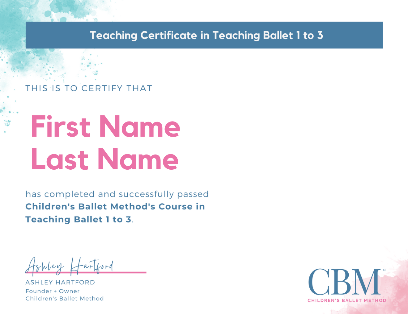 CBM Certified Teacher Certificate for Teaching Ballet 1 to 3